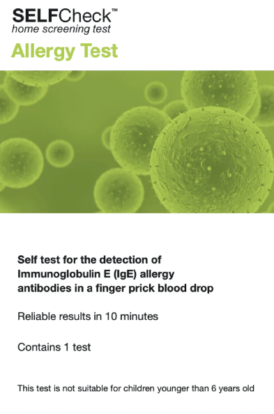 Worried if your allergy antibody levels are high? Find out in as little as 10 minutes! The SELFCHECK Allergy Test is a finger prick blood spot health check that provides a quick and dependable assessment of your allergy antibody levels (Immunoglobulin E) in the comfort of your home. In just 10 minutes, you can determine whether your levels of Immunoglobulin E antibodies are normal or high.
